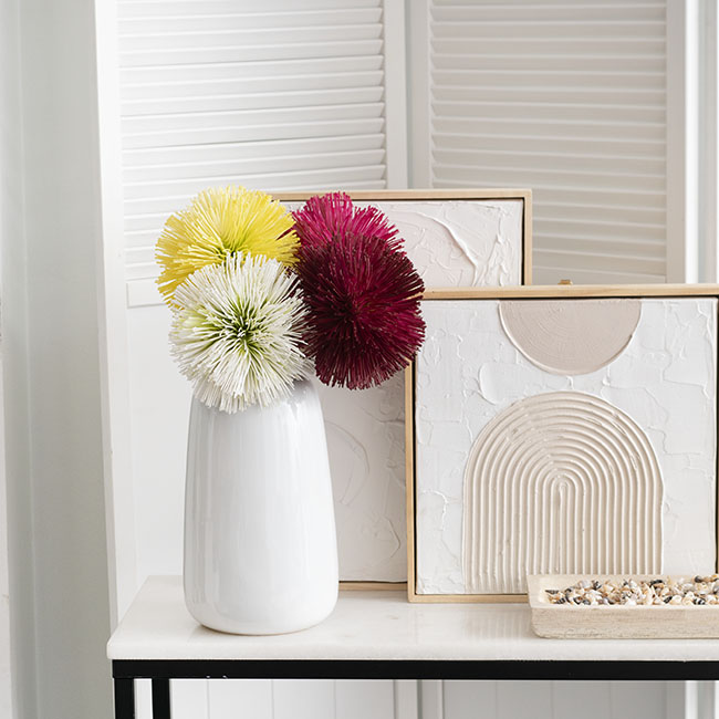 Introducing our Onion Ball Stem in a delightful yellow hue, a captivating botanical accent that effortlessly combines elegance and charm. Standing at a modest 47cm tall, with a flower head boasting a generous 15cm diameter, this artificial onion ball stem showcases meticulous craftsmanship and lifelike detail. The yellow-colored petals evoke a sense of timeless sophistication, making it a versatile addition to any decor theme.