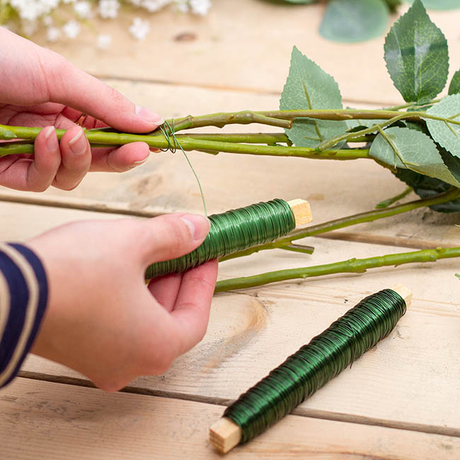 Many florist students prefer our painted designer wire because it feels like copper wire on a easy to use stick. It is 0.55mm thick or 23 Gauge and 100g. 50m of wire on a stick.