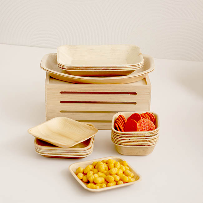 Our Palm Leaf tableware is made up from the fallen leaves of the Areca Palm Trees. It is food safe, heat resistant, leakproof, microwave, oven and freezer safe. It is 100% compostable and will break down in 60 days. The Palm Leaf may vary in colour, thickness and pattern. This party range includes a variety of sizes in plates and bowls and is suitable to cater for all events. This medium size platter is 35.5cm x 25cm and comes in a pack of 2.