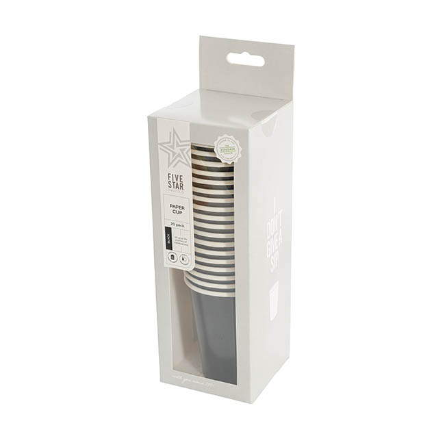 This paper cup has a 260ml capacity and comes in a pack of 20. We advise against the use of these cups for hot beverages, as they only have one wall and no handle.