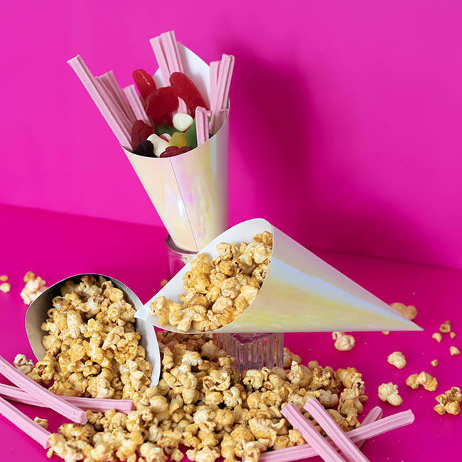 Use this cone for serving popcorn and confectionery at parties, or use at weddings to hold confetti and flower petals.