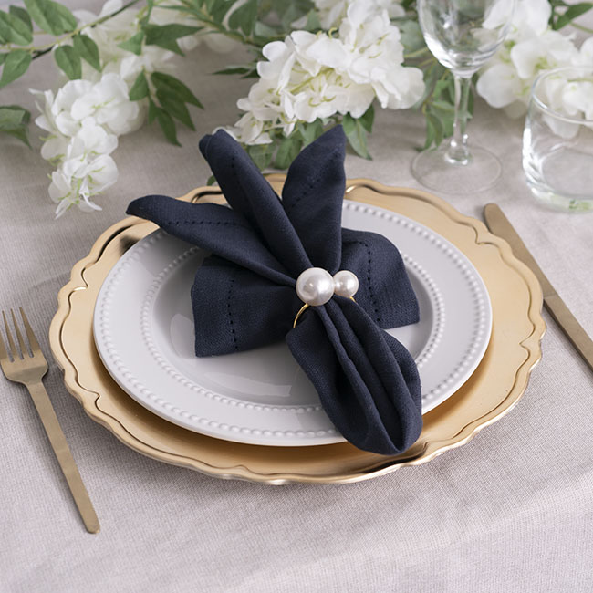 Our Ivory Pearl Napkin Ring with Gold details is a versatile napkin ring that lends itself to application across several event types and styles. Minimalistic in its aesthetic without compromising on classic elegance, this napkin ring can be dressed up or dressed down. Ideal for dinner parties, weddings, anniversary parties, and more, this napkin ring has a style that makes it reusable for multiple occasions.