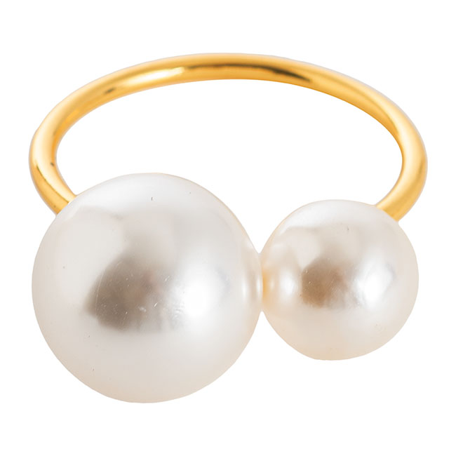 Pearl Napkin Ring Pack 4 Ivory & Gold (4.5cmD)