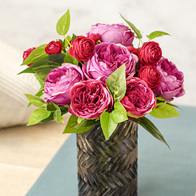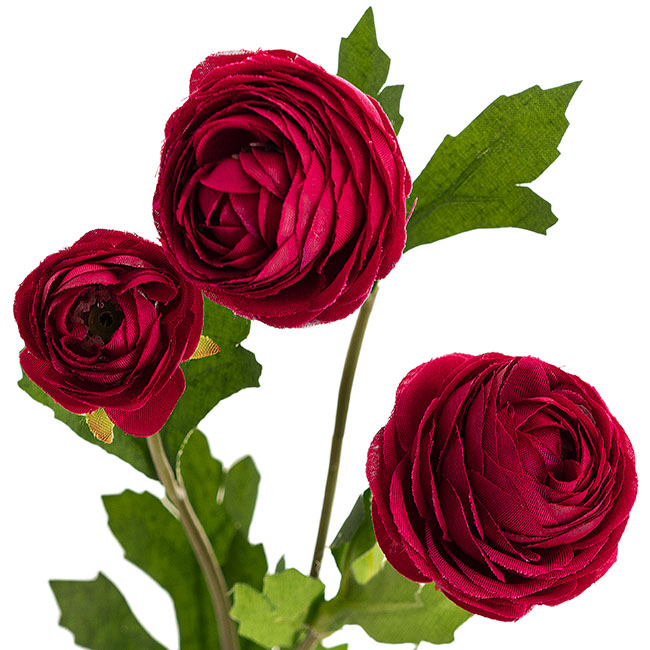 This spray measures 42cm tall. The open flower measures 4.5cm in diameter, and the buds measure 3.5cm in diameter.