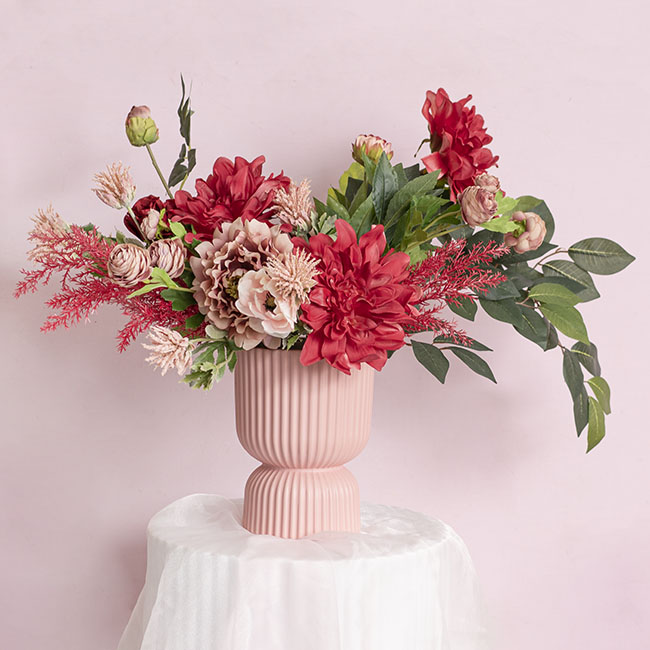 This spray measures 42cm tall. The open flower measures 4.5cm in diameter, and the buds measure 3.5cm in diameter.