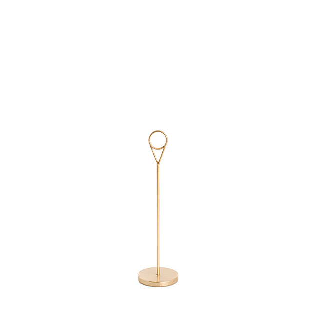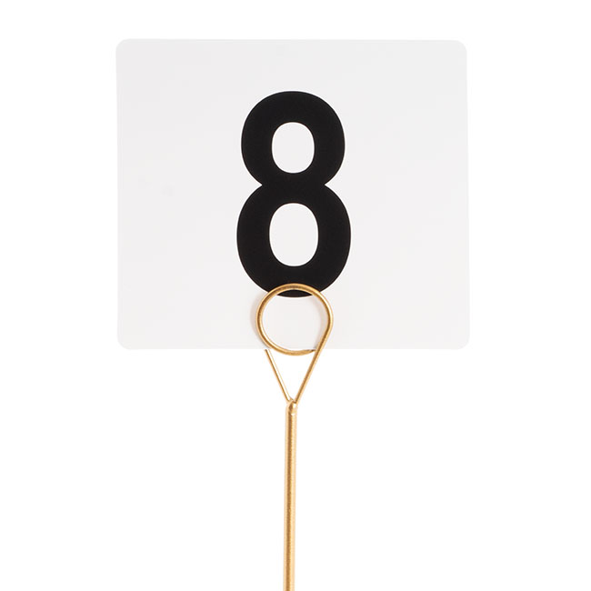 Display your table numbers, guest's allocated seats, or merchandise your store with these gold place card & number holder stands. Made of solid metal with a clean finish, these stands are well-crafted and minimalistic, which makes for easy reuse across a number of event styles.