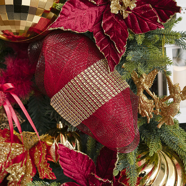 Florist mesh wrap is 55cm wide and wound 9m (10 yard) on a roll. The mesh is interwoven and has a selvage on both sides to prevent fraying. The mesh is quite soft and fabric like with a mesh gauge of approximately 0.5cm (not too fine) and is easy to scrunch or tied into a bow. This product has many uses such as flower and gift-wrapping and many decorating applications.