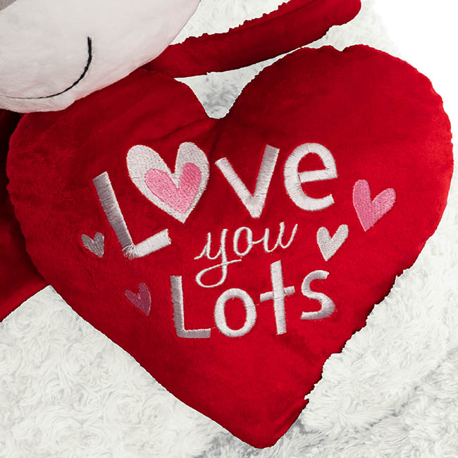 .Standing at 113cm tall, with a sitting height of 62cm, Winston is sold individually. The heart he bears measures 25cm wide and 23cm tall.
