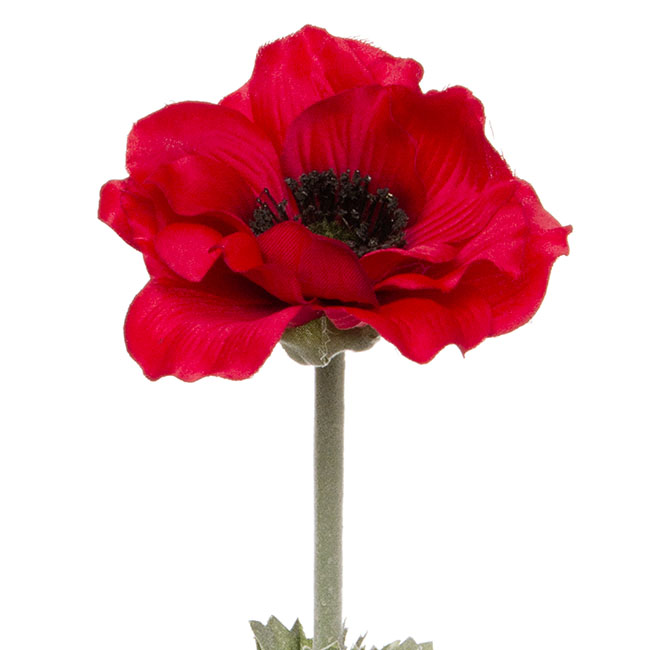 Red poppies are a symbolic flower for Anzac Day and Remembrance Day. This single head Poppy has a Black centre, and a 55cm stem.