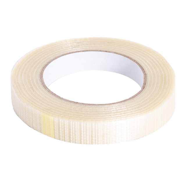 This three quarter inch (18mm) wide clear pot tape similar to duct tape, gaffa or gaffer tape and also known as anchor tape. It is a very sticky cloth based, plastic covered waterproof tape. The main use of this strong high-tack adhesive tape is to secure floral foam into containers that do not have a guard. It will not damage or leave a sticky residue once removed.
