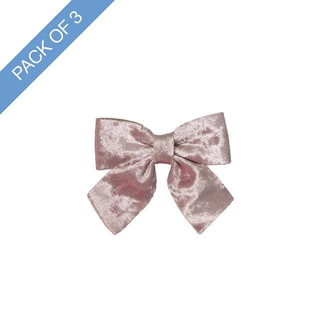 The velvet finish on the front of the bow gives a crushed effect and the backing is a firm foam, giving the bow structure. This bow has a tie back, for easy attachment to almost any surface.