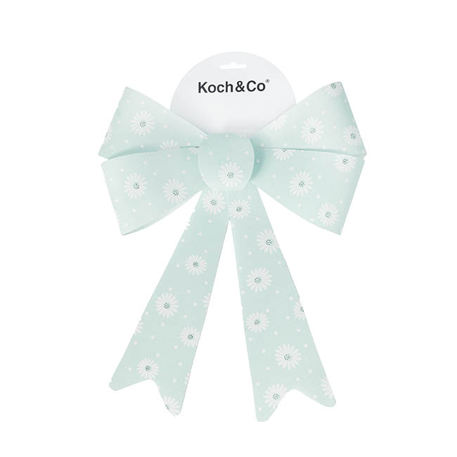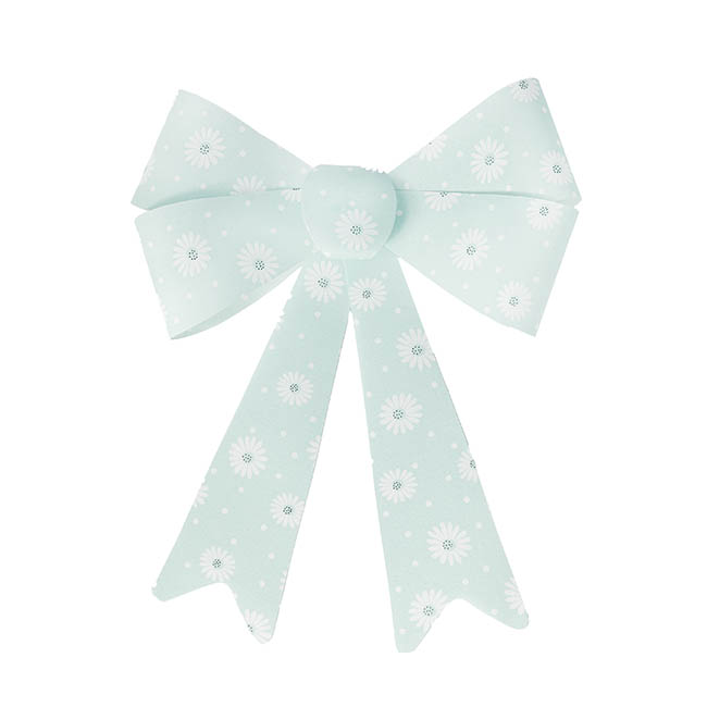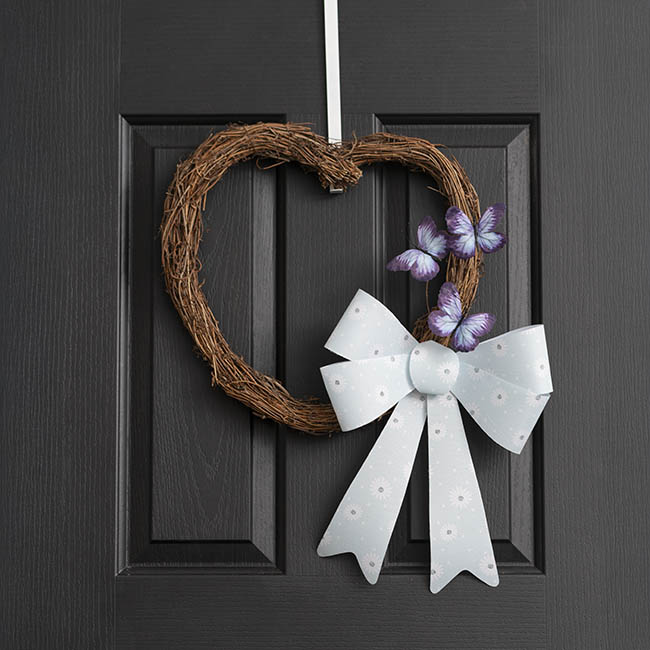 The overall width of this bow is 28cm. The overall length, from the top loop to the tail end, is 37cm. The bow loop measures 8.2cm wide at its widest point. This bow is sold individually.