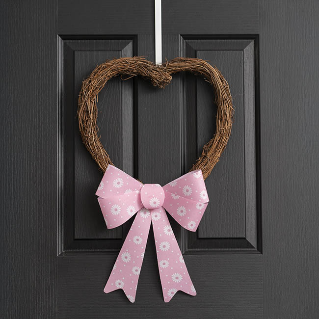 The overall width of this bow is 28cm. The overall length, from the top loop to the tail end, is 37cm. The bow loop measures 8.2cm wide at its widest point. This bow is sold individually.