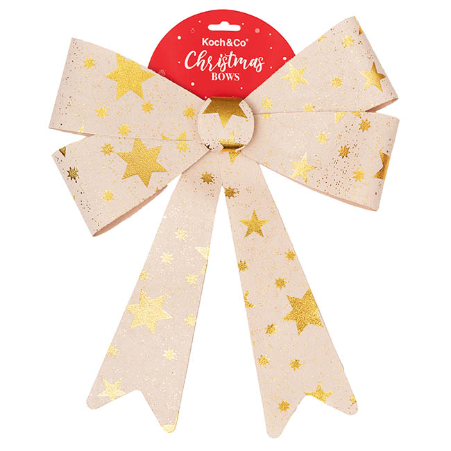 The overall width is 28cm and the overall length, from top loop to tail end is 37cm. The bow loop measures 8.5cm wide. Sold as an individual bow.