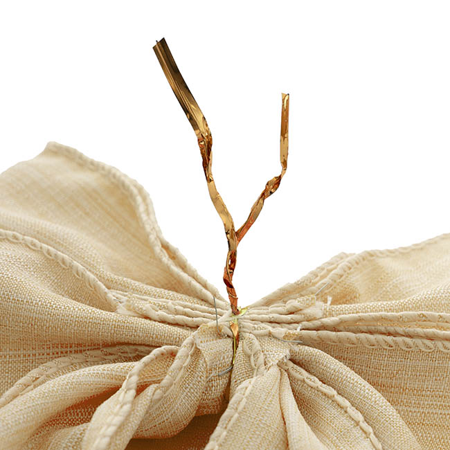 This bow has a sewn wired edge, giving it a polished finish and allowing you to style as needed. Featuring easy-to-use tie attachments, this bow offers a convenient way to produce perfect, homey bows for your gifts and decor.