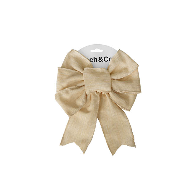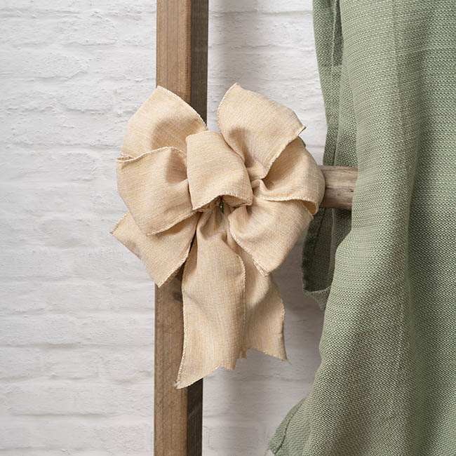 This bow has a sewn wired edge, giving it a polished finish and allowing you to style as needed. Featuring easy-to-use tie attachments, this bow offers a convenient way to produce perfect, homey bows for your gifts and decor.