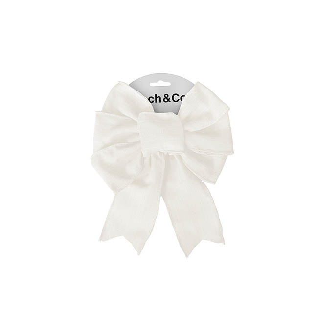 This bow has a sewn wired edge, giving it a polished finish and allowing you to style as needed. Featuring easy-to-use tie attachments, this bow offers a convenient way to produce perfect, homey bows for your gifts and decor.