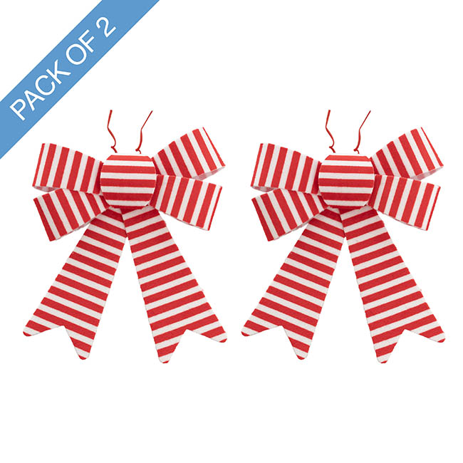 The overall width is 14cm and the overall length, from top loop to tail end is 18cm. The bow loop measures 3cm wide. Sold as a Pack 2.