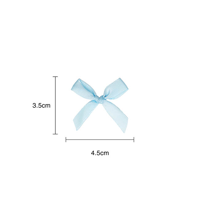Sold as a pack of 24, this bow is made with 10mm single-face satin ribbon. The bow loops create a 3.5cm wide bow. The tails are approximately 3cm long and can be trimmed to suit your needs.