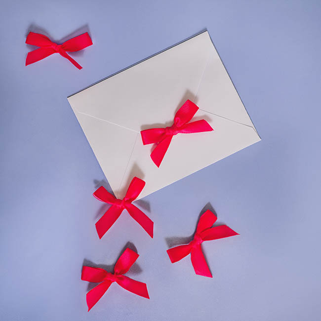 Sold as a pack of 24, this bow is made with 10mm single-face satin ribbon. The bow loops create a 3.5cm wide bow. The tails are approximately 3cm long and can be trimmed to suit your needs.