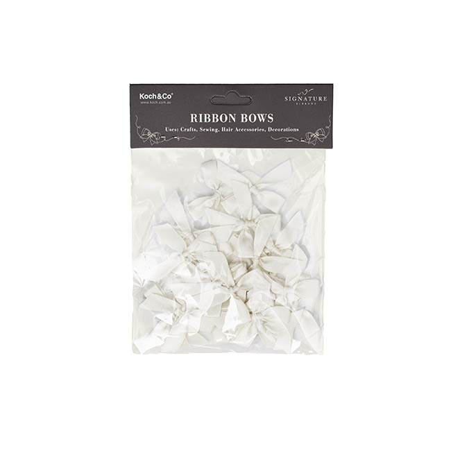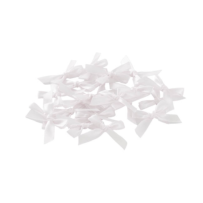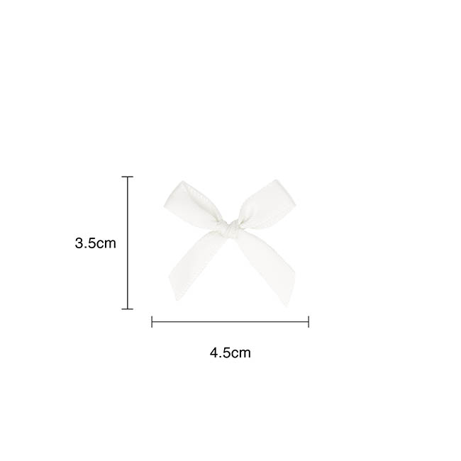 Sold as a pack of 24, this bow is made with 10mm single-face satin ribbon. The bow loops create a 3.5cm wide bow. The tails are approximately 3cm long and can be trimmed to suit your needs.