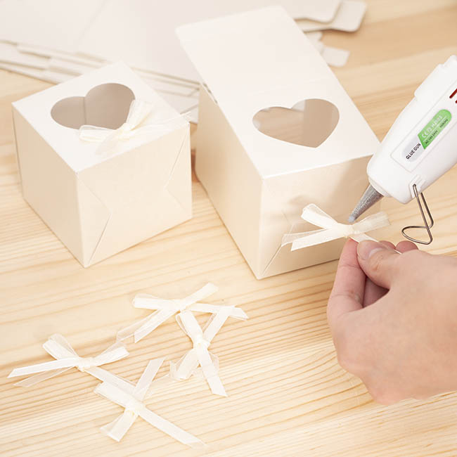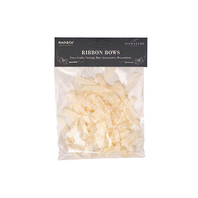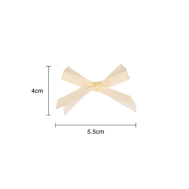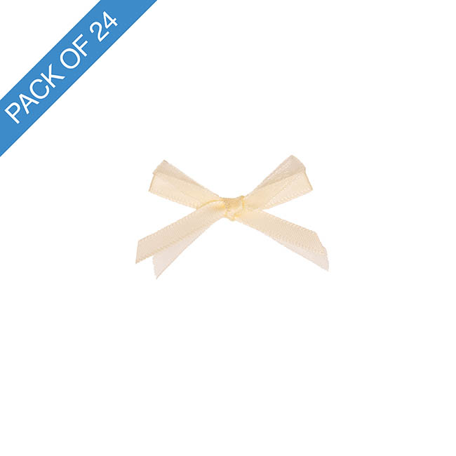 Sold as a pack of 24, this bow is made with 6mm grosgrain ribbon. The bow loops create a 5cm wide bow. The tails are approximately 3cm long and can be trimmed to suit your needs.