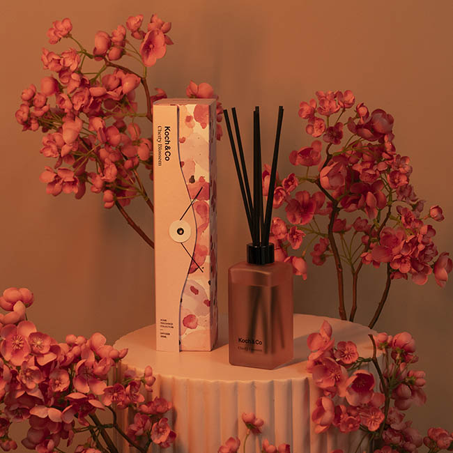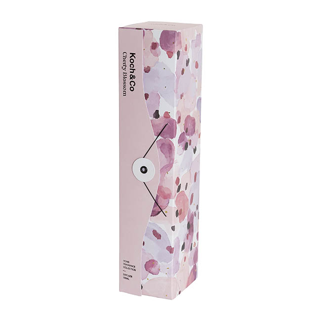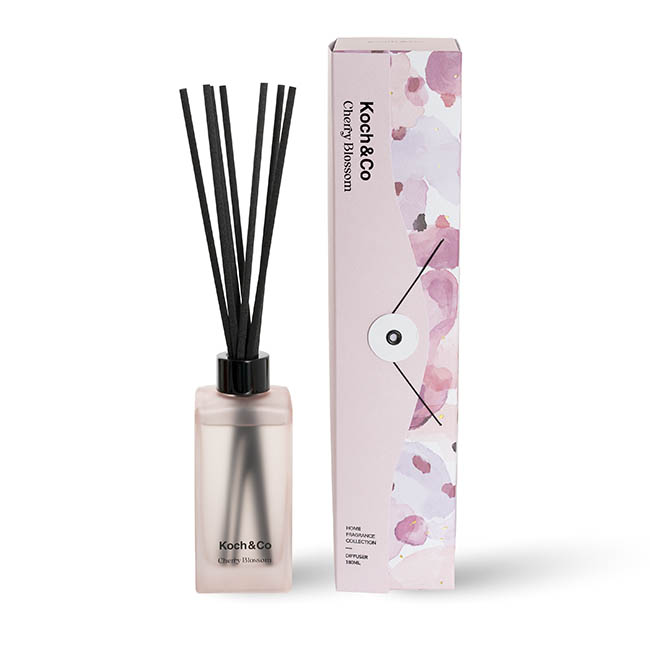 Beautifully packaged in an origami-style box that is completely recyclable and plastic-free, this diffuser comes in a frosted pink glass bottle with black accents.