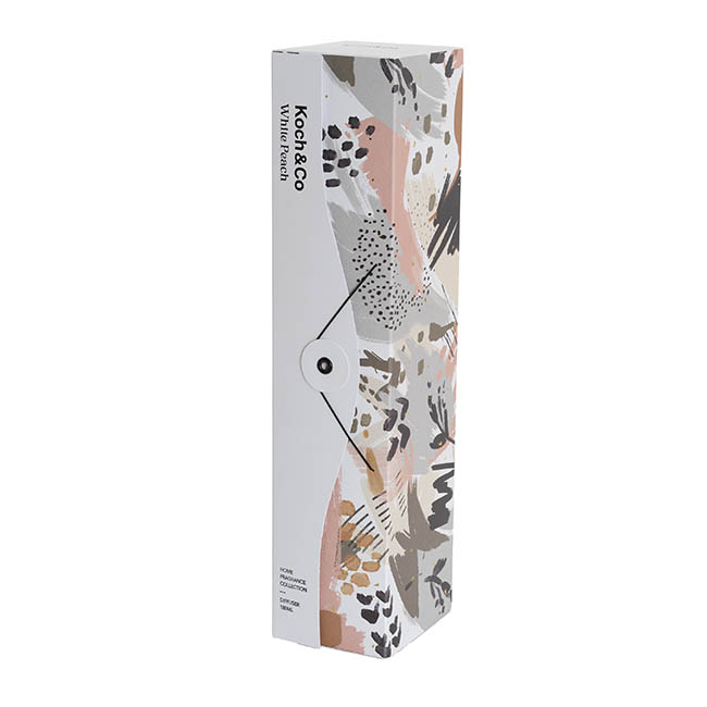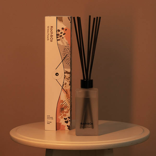 Beautifully packaged in an origami-style box that is completely recyclable and plastic-free, this diffuser comes in a frosted clear glass bottle with black accents.