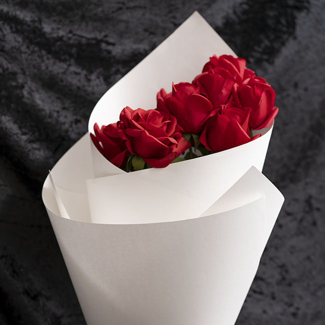 The smooth texture of white kraft paper gives it an elegant and modern appearance that is perfect for creating a unique flower arrangment or gift.
