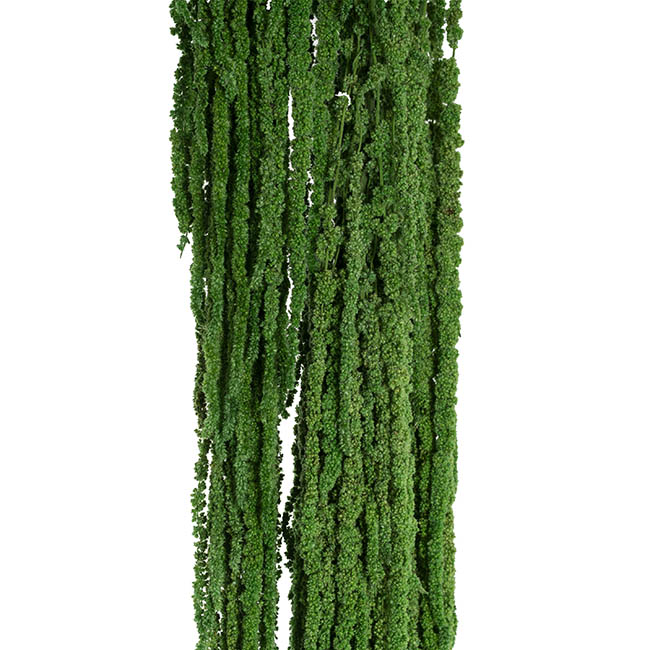 Elevate your arrangements with our preserved dried hanging amaranthus in green, featuring beautifully cascading stems ranging from 62cm to 100cm in length. Its lush, trailing texture adds instant depth and movement to vases, installations, and event styling. Please note, as this is a natural product, each batch may vary slightly in look, size, and colour, giving every bunch its own unique natural beauty.