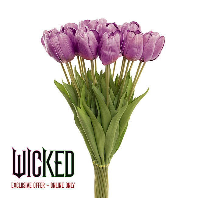 This Real Look Tulip in Purple is a large-headed flower, as seen in the floral installation made for the Wicked Sydney movie premiere. Featuring Real Look petals made lifelike with detailed 3D-printing, this flower is subtly multi-tonal, with realistic vein details on the petals.