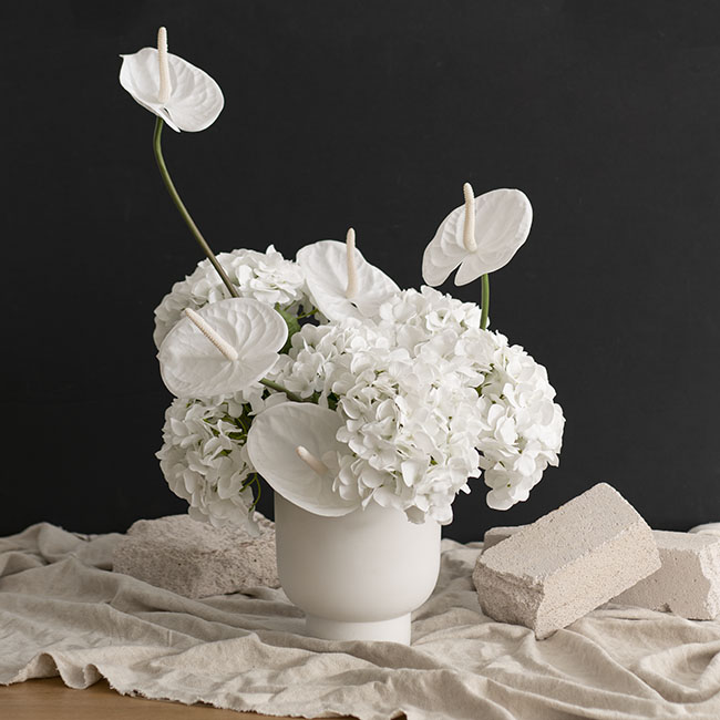 Our real touch Anthurium Flower in crisp white colour is very lifelike and can be used in any arrangement to heighten any event or wedding.