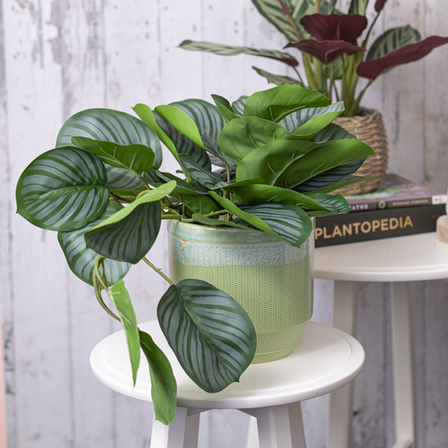 Enjoy the beauty of nature indoors with this luscious artificial real touch Arrowroot draping potted plant. You can display as is or place it in a container to match your home decor.
