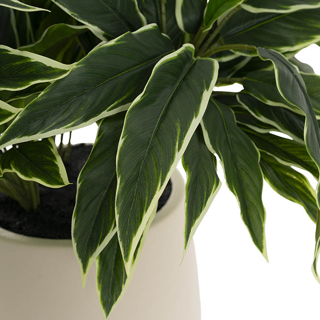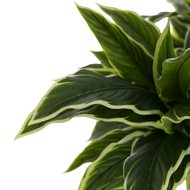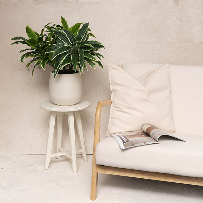 This plant stands 60cm tall and features approximately 120 variegated leaves. The pot measures 23cm in diameter and 22cm high. This potted plant is sold individually.