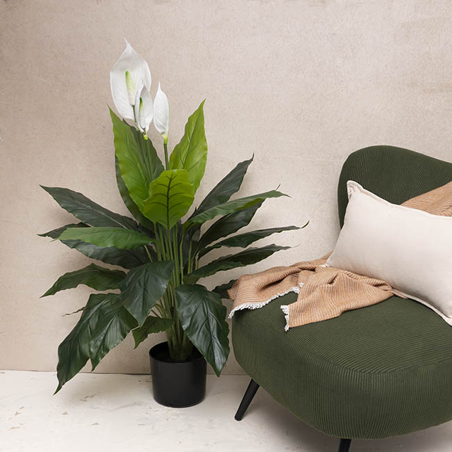 Elevate your interior with this lifelike real-touch potted Spathiphyllum plant, standing an impressive 1m tall. Featuring lush green foliage and three elegant flower heads, it brings a serene, natural presence to any room. Housed in a sleek black pot measuring 17cm in diameter and 15cm high, this maintenance-free piece offers timeless style and a realistic finish, perfect for homes, offices, and display spaces.