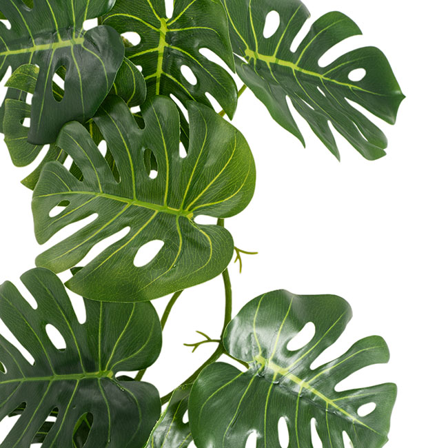 Our Real Touch Philo Monstera Vine Garland in Green is a tropical take on our popular garlands. This garland measures 125cm in length and each leaf measures up to 15cm wide and 16cm long. Please note that there is no wire base to this garland. The end of the garland has a small loop for easy hanging.
