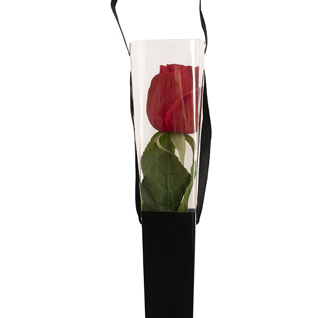 The cone measures 5.5cm in top diameter and stands 65cm tall, while the single stem real touch rose bud reaches 60cm with a 5cm wide bloom.