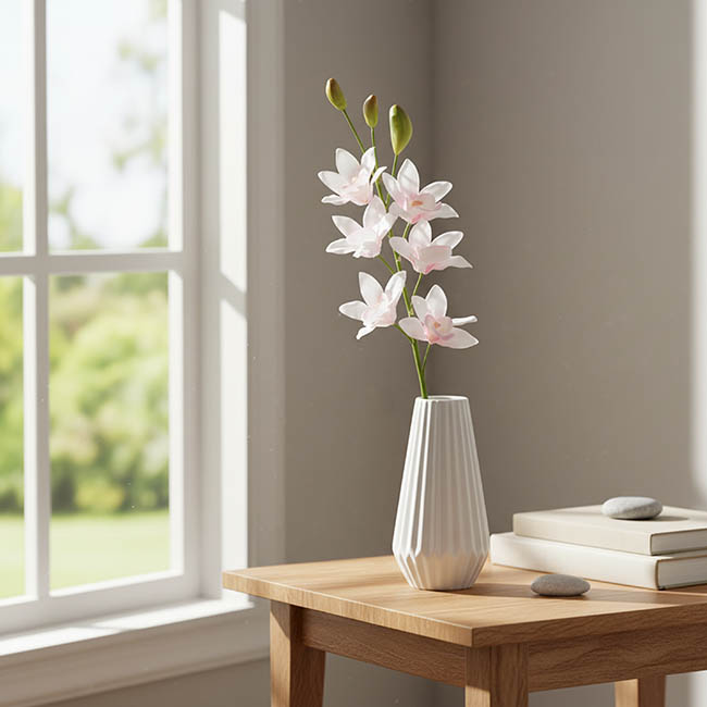 Designed with wired stems for easy shaping, this orchid is lifelike in form and texture. Use this flower to create stunning arrangements or to add a statuesque, exotic charm to your space.