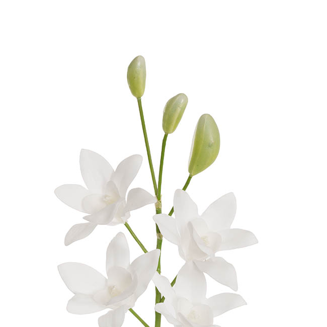 Designed with wired stems for easy shaping, this orchid is lifelike in form and texture. Use this flower to create stunning arrangements or to add a statuesque, exotic charm to your space.