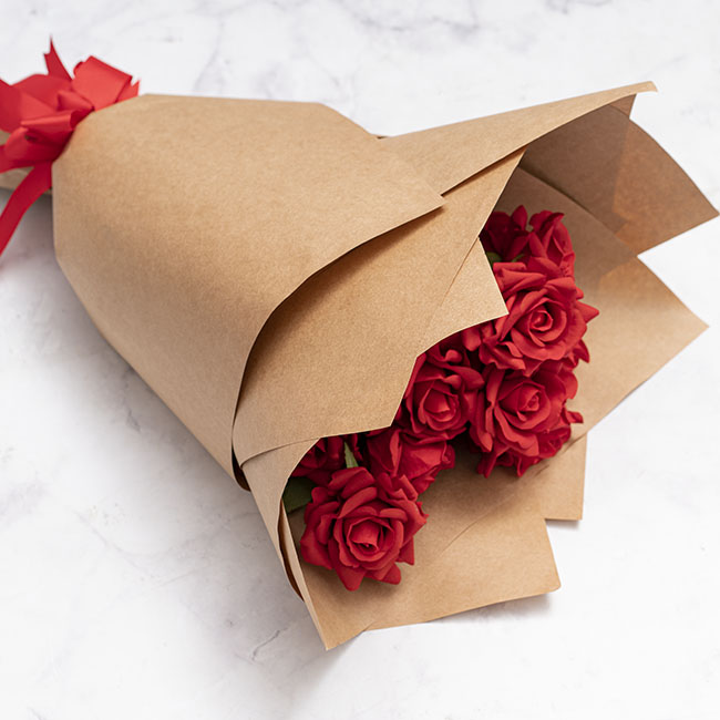 The rough and natural texture of kraft paper gives it a rustic, earthy appearance that is perfect for creating a unique flower arrangment or gift.
