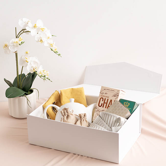 Our Regency magnetic gift boxes can easily be made food-safe by lining the base of the box with food-grade paper or aluminium foil before adding food.