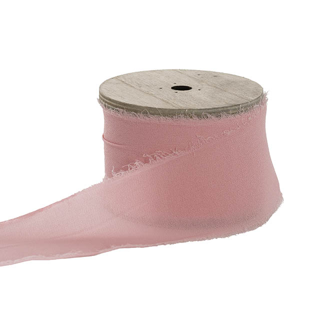 Our Chiffon Ribbon in Soft Pink has a frayed edge and is beautifully presented on a wooden spool.