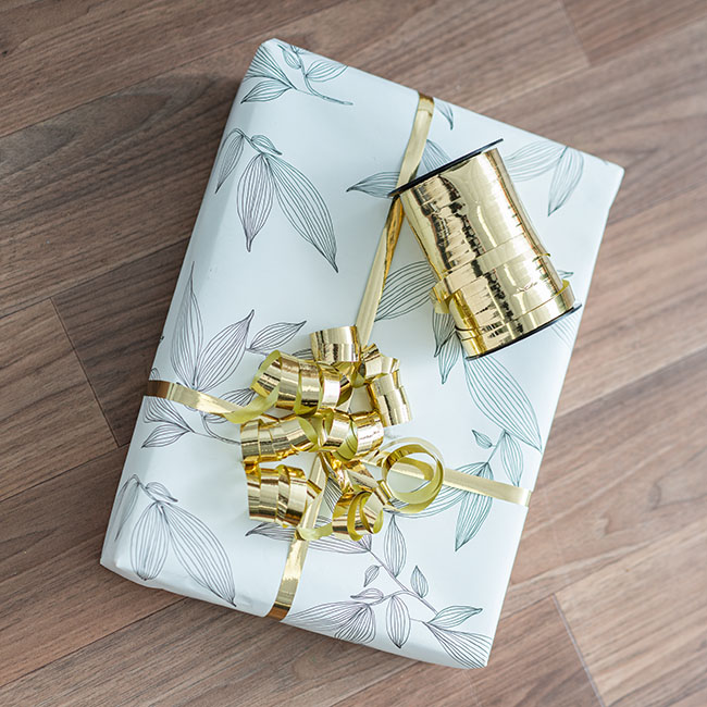 This ribbed textured ribbon has a matte finish and is made from a thin, flexible material. It can be easily curled with scissors.