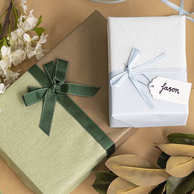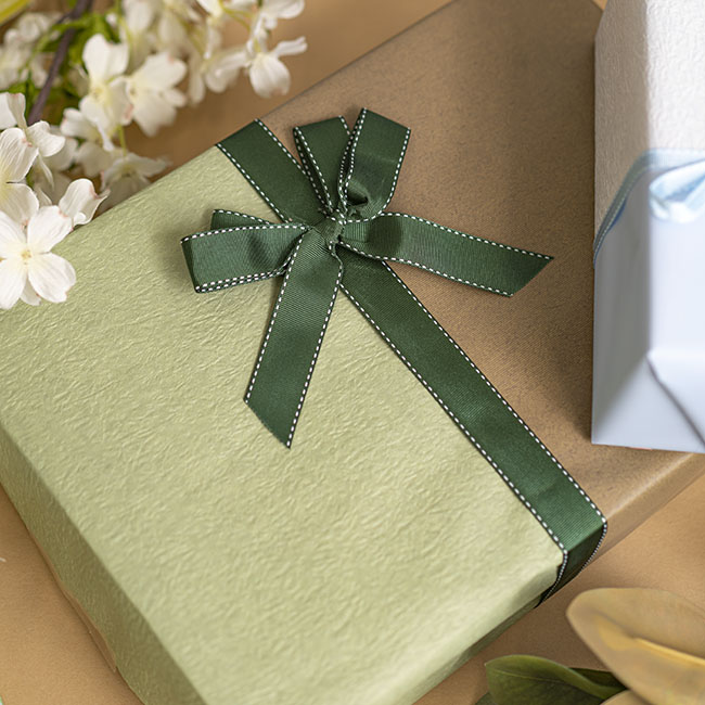 This Saddle Stitch Grosgrain Ribbon in Dark Green with White is a durable, ribbed texture fabric ribbon that feels thick and premium to the touch. This Saddle Stitch Grosgrain ribbon measures 25mm wide and 20m long.