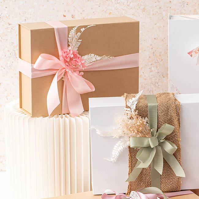 A beautiful wide ribbon for adding a special touch to gift wrapping and packaging, It can also be used in fashion design to embellish garments or hats or as a sash, as well being used for wedding decorations, and other event decor to add a pop of color and texture to the design.
