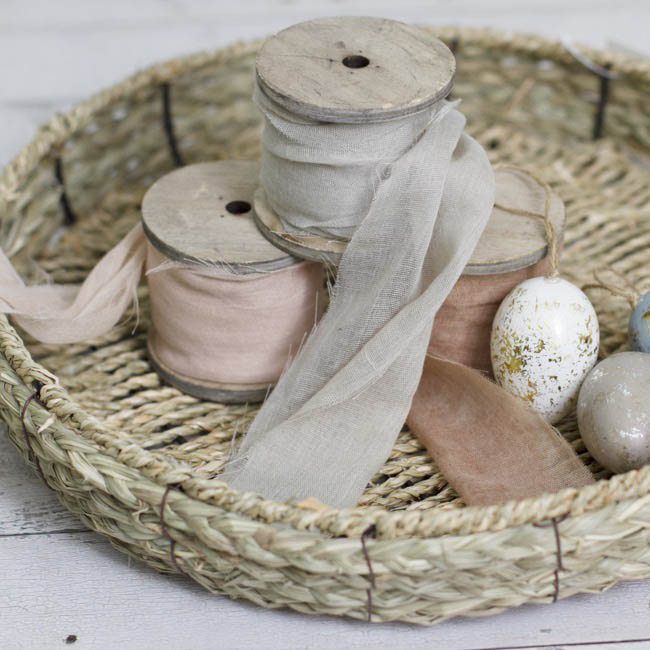 Presented on a wooden spool, this Faux Silk Ribbon is hand dyed and hand cut with a frayed edge. It is 80mm-90mm in width and is available in a 5m roll. The range of colours makes this ribbon ideal for adding to soothing tones used in bouquets and arrangements.