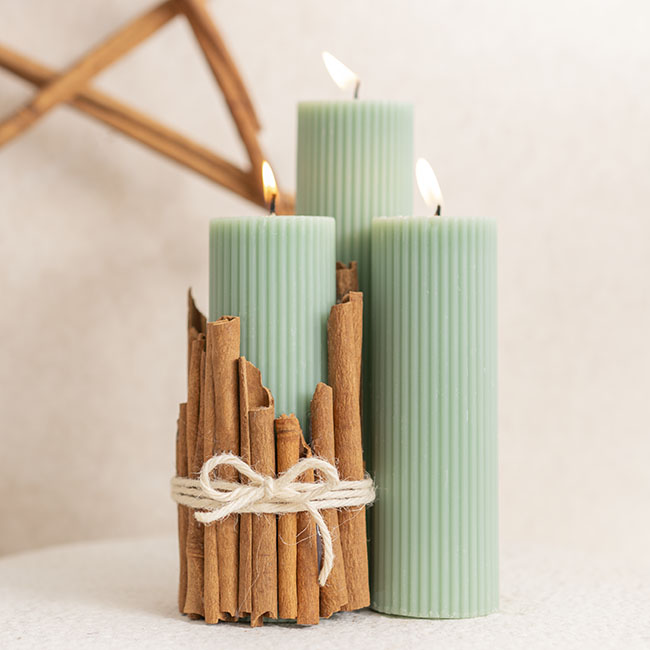 Our Roman Fluted Pillar Candle in Pale Sage is a plain-coloured ribbed candle that will bring textural interest to your event and home decor. Pair with other products from our Roman Fluted candle range for a complementary cluster. This candle is dripless.