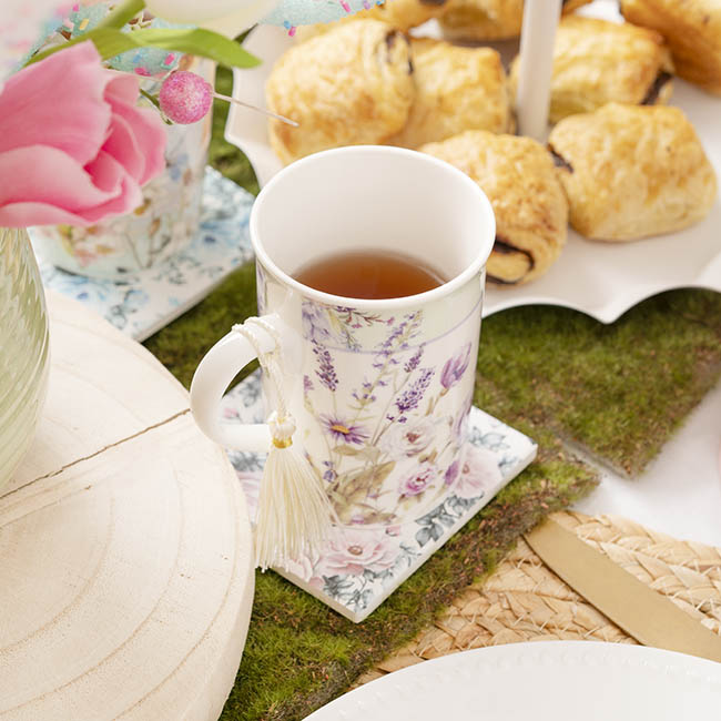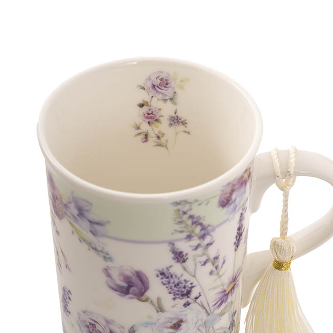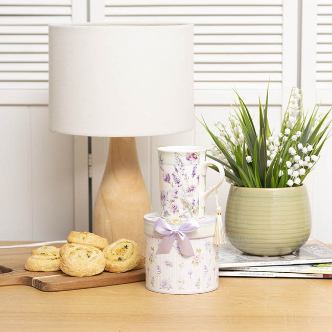 Add a touch of elegance to tea time with this charming mug, featuring a delicate soft lavender rose and daisy design. With a 320mL capacity, a 7.5cm diameter, 10.5cm height, and 11cm length including the handle, it’s perfectly sized for your favourite hot beverages. The mug comes adorned with a cream tassel and is beautifully presented in a matching gift box, making it an ideal gift for Mother's Day and other special occasions.
