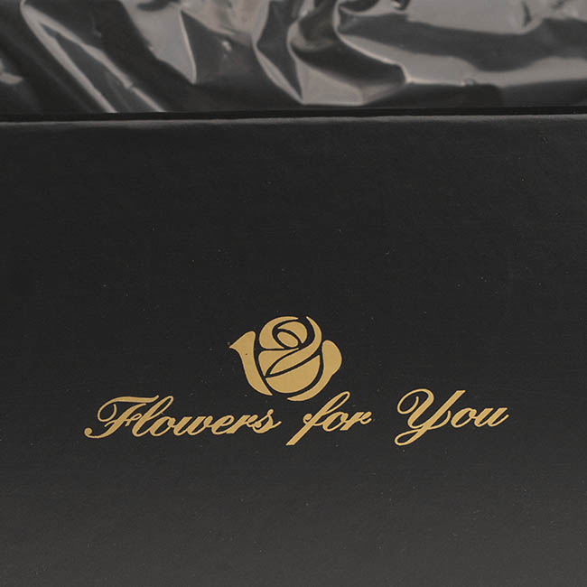 It has a message of Flowers for You in gold foil on the front at the bottom.