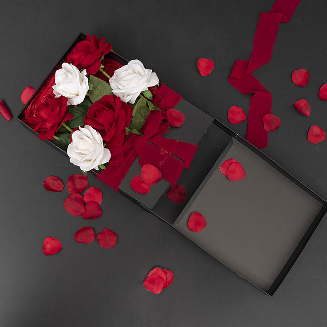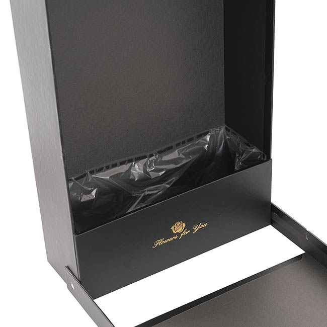 Please note: It is recommended that when the flowers are added, the keep the box in an upright position to prevent leakage.